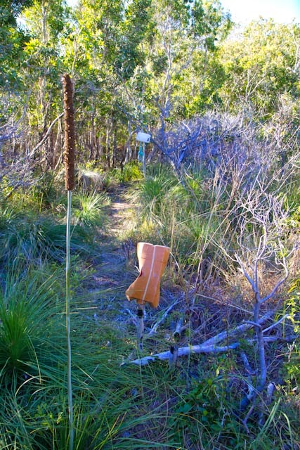 | not sure if marking a hiking trail with plastic beach debris is clever, or depressing |