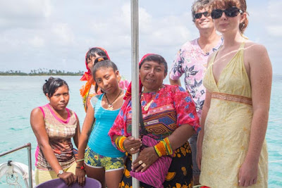 | Local women visiting the boat--they only spoke enough Spanish to talk about molas. They really are this short btw, Guna people are the second shortest indigenous group in the world |
